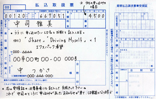 郵便局の青色の振込み用紙にCD名
